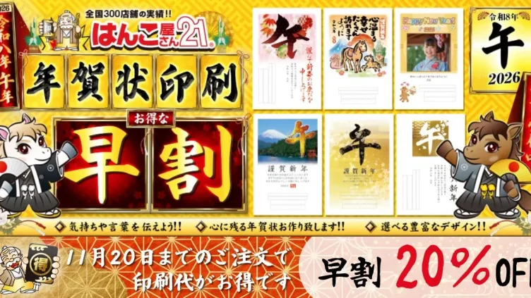 年賀状印刷は11/20まで早割20%OFF