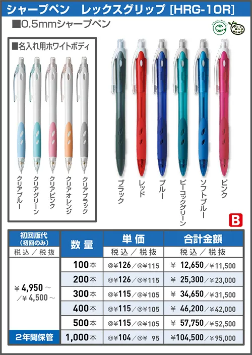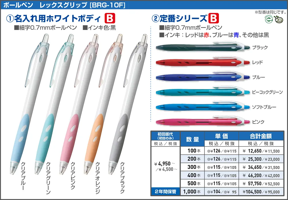 ※本体色は10本からアソート可能です。(印刷色は変更できません)