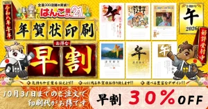 年賀状印刷は10/31まで早割30%OFF